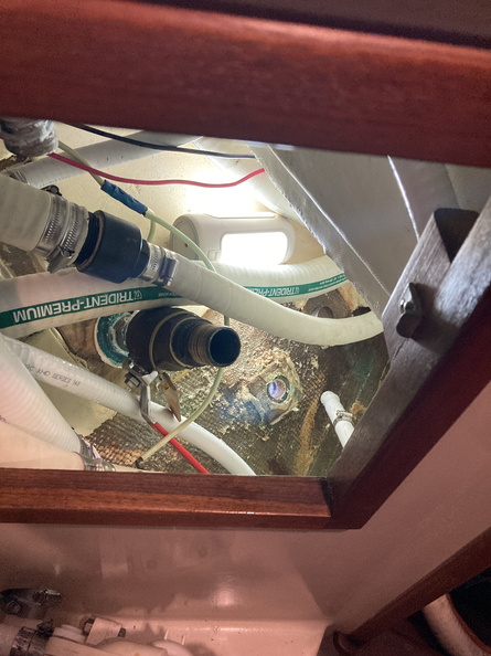 My first job was to remove the valves and thru-hull under the sink as well as the old transducers I was no longer using on the bottom of the hull.