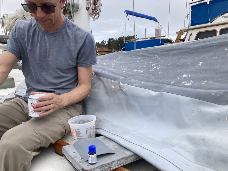 The secondary list included varnishing the wood on the outside of the boat, fixing a leak in the engine's seawater pump, installing some other electronics bits, stitching a tear in the cover of our genoa, installing some new LiFePO4 batteries I assembled, and making sure the dinghy that came with the boat was still in decent shape.